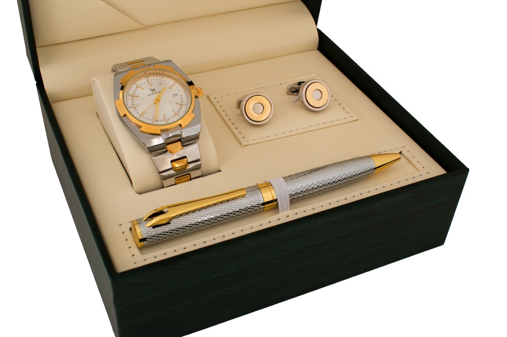 طقم ساعه رجالي لويس ريفال 5153 لونين ذهبي ميناء ابيض